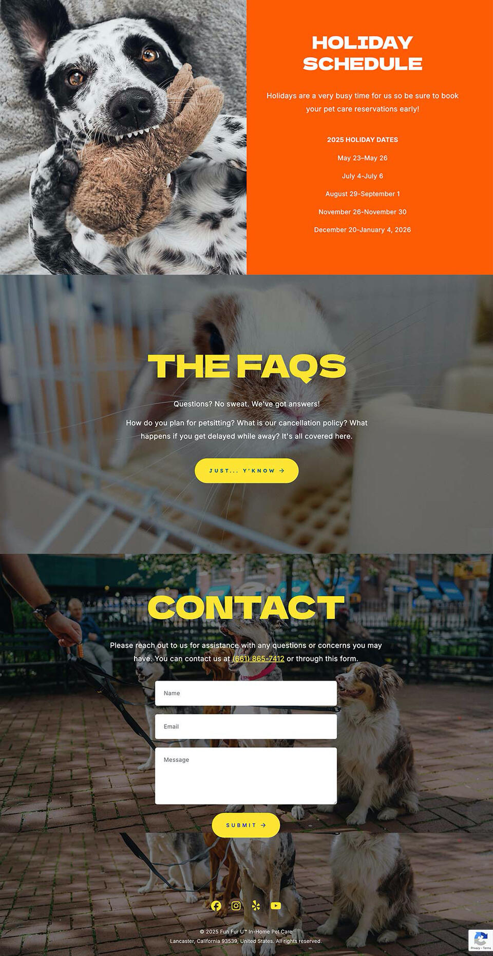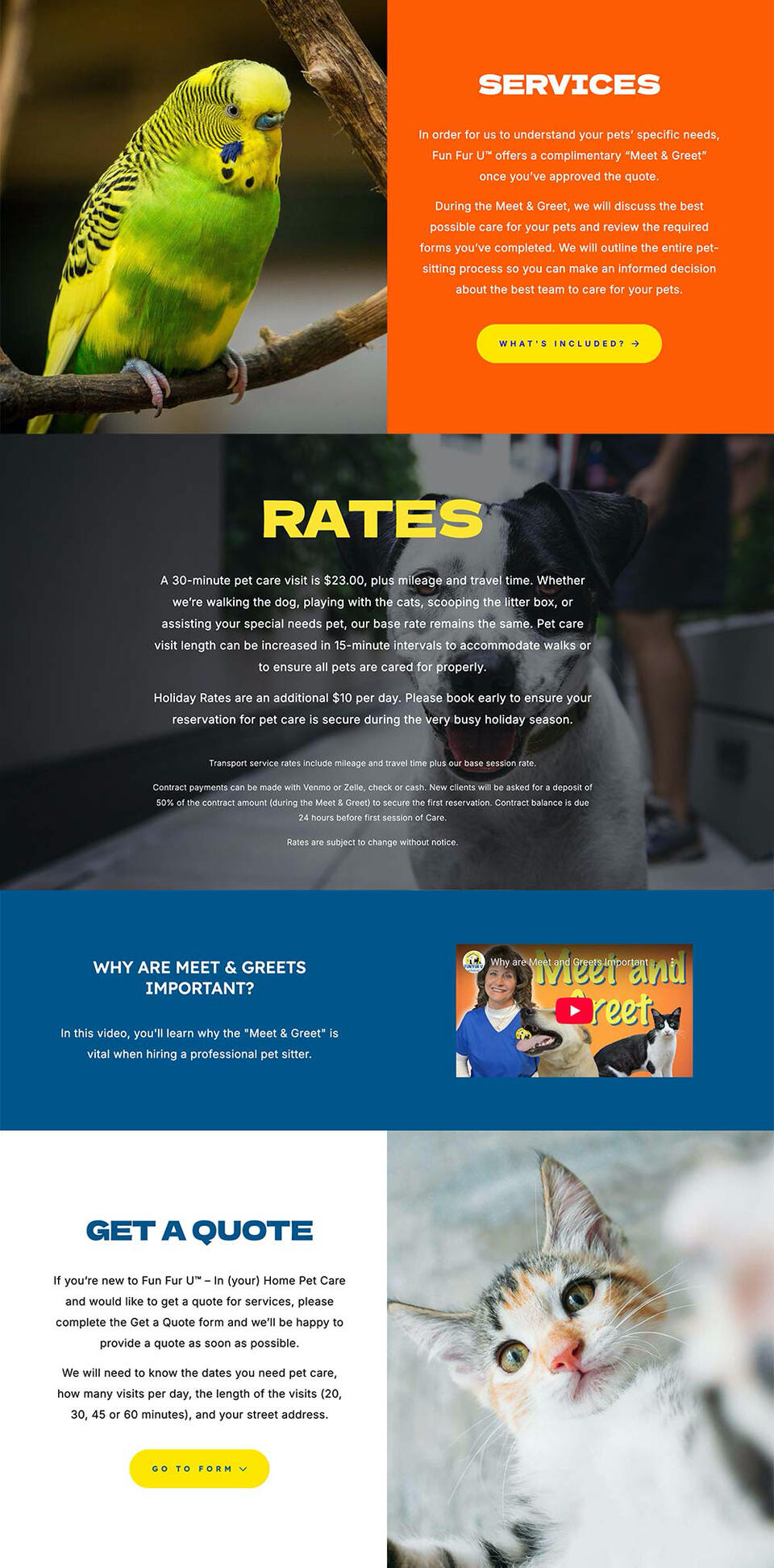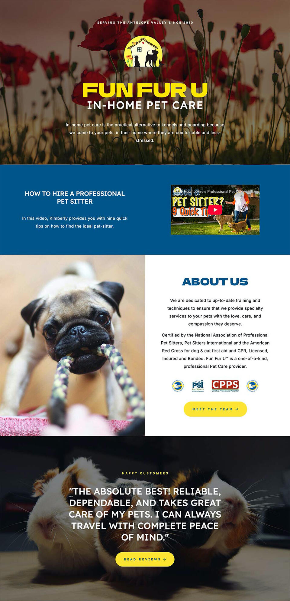 My sister has a licensed therapy dog who makes a lot of friends. She asked for a bright and fun site for the kids to be able to check out whenever they wanted.